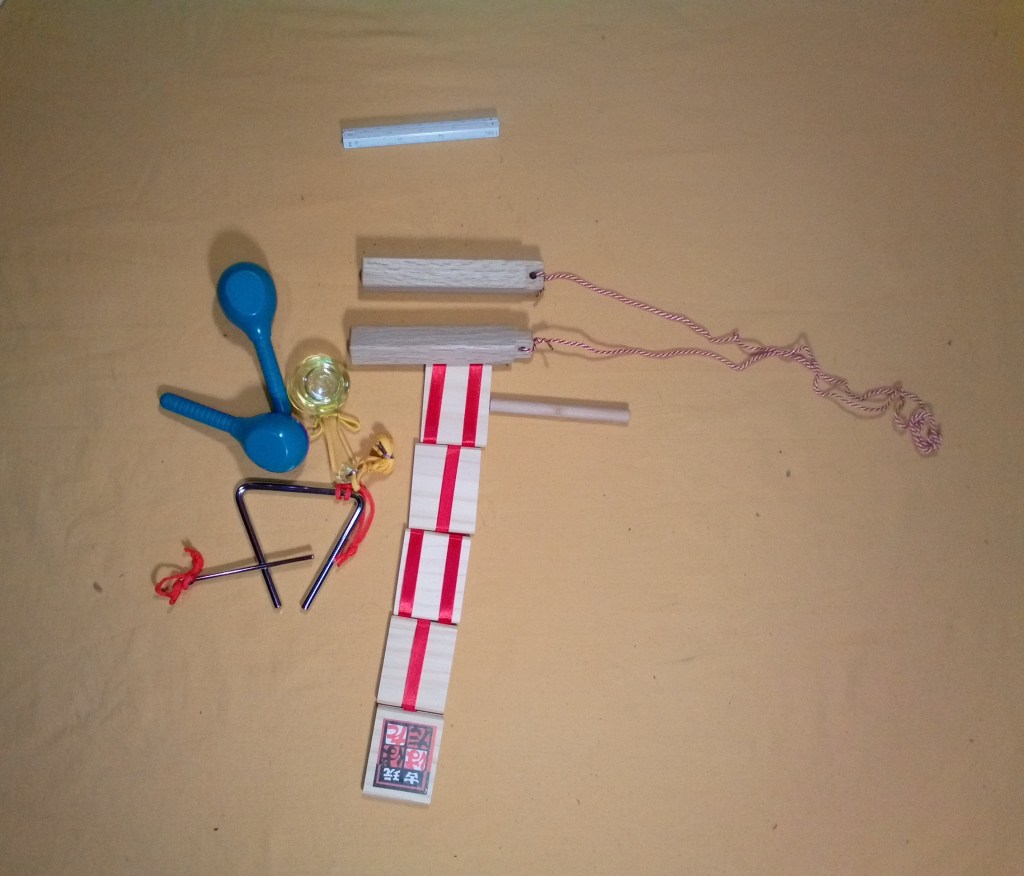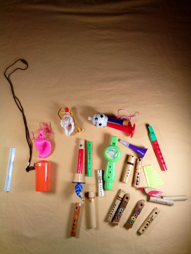 Durante mis viajes un día sin comprar un instrumento es casi un día perdido (a veces es un día de viaje entre ciudades o países), por eso lo compenso comprando juguetes o materiales para construir instrumentos.