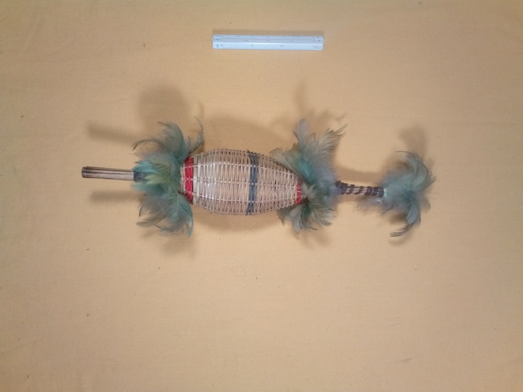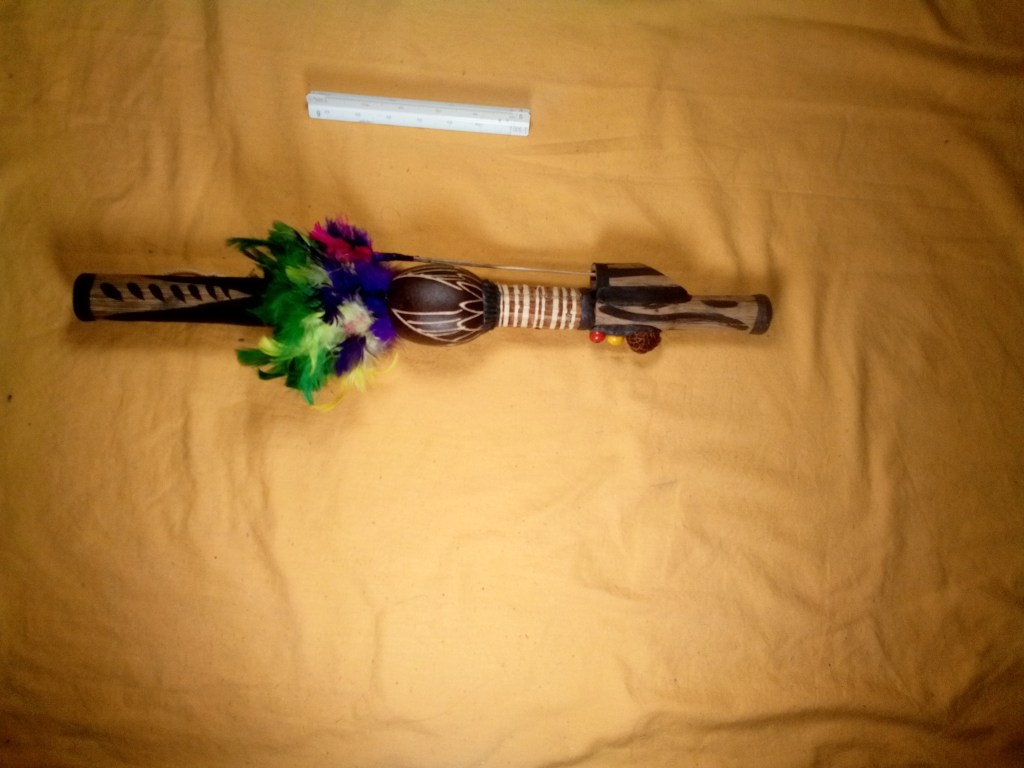 Curioso ejemplar, maraca y cerbatana todo en uno. Sospecho que como cerbatana es completamente inútil. Comprada en Leticia, Colombia.