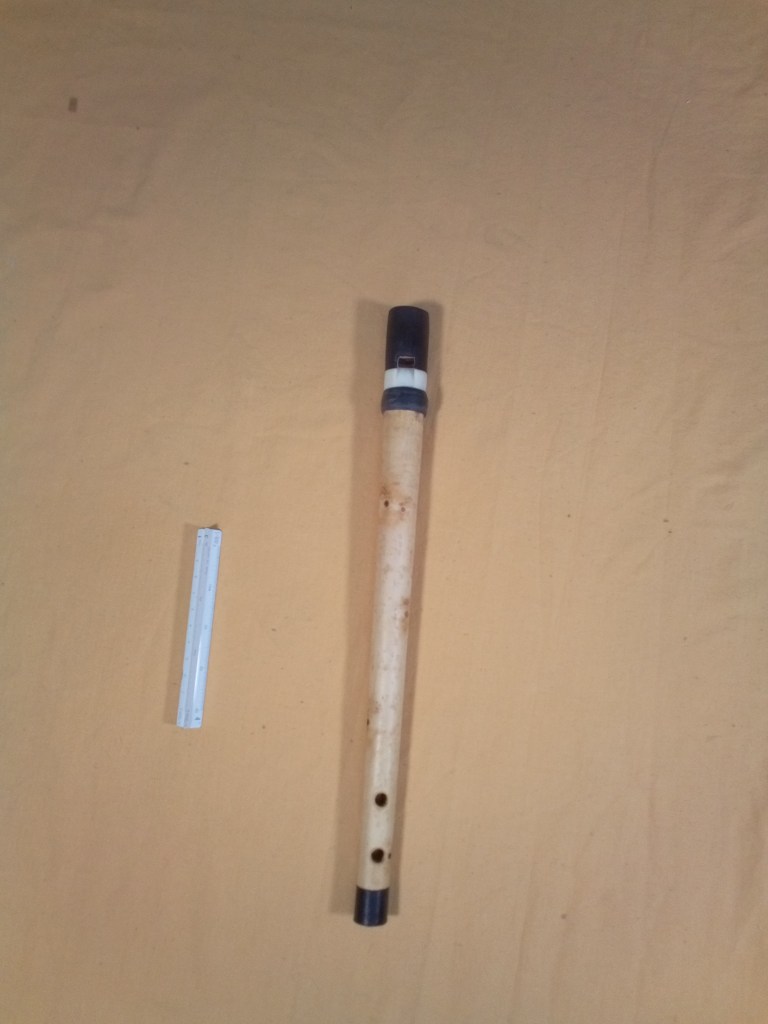 Gaita charra con su tambor, ésta está fabricada por Manolo Pérez padre. Es un invento propiciado por mi amigo Alberto Jambrina, está en re, las típicas están en algo parecido a fa# (yo suelo decir que están en fu remol mediano, soy incapaz de tocarlas, tiendo a intentar afinar, son maravillosas de escuchar con sus terceras neutras).