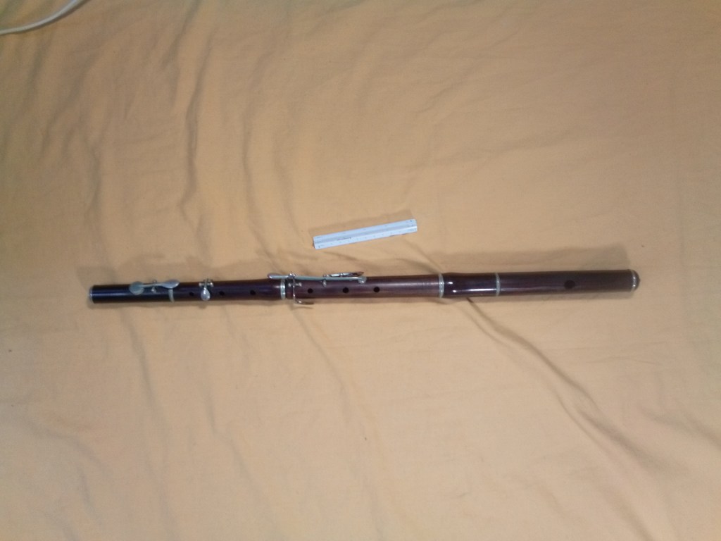 Flauta travesera de cinco llaves, comprada en el rastro de Madrid, tuve que restaurarla.