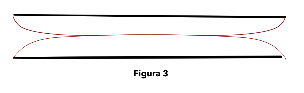 Si lo que producimos es el primer armónico, la distribución sería: vientre, nodo, vientre nodo y vientre, siendo la longitud de la onda la mitad y la frecuencia el doble (figura 4), y así sucesivamente.