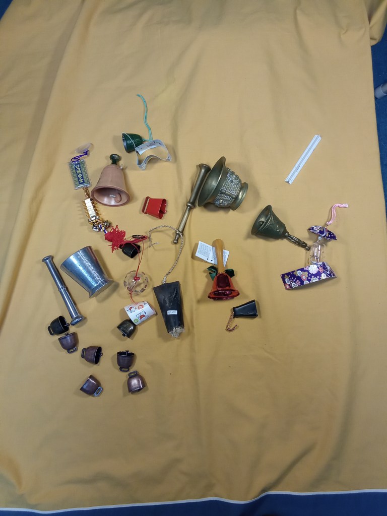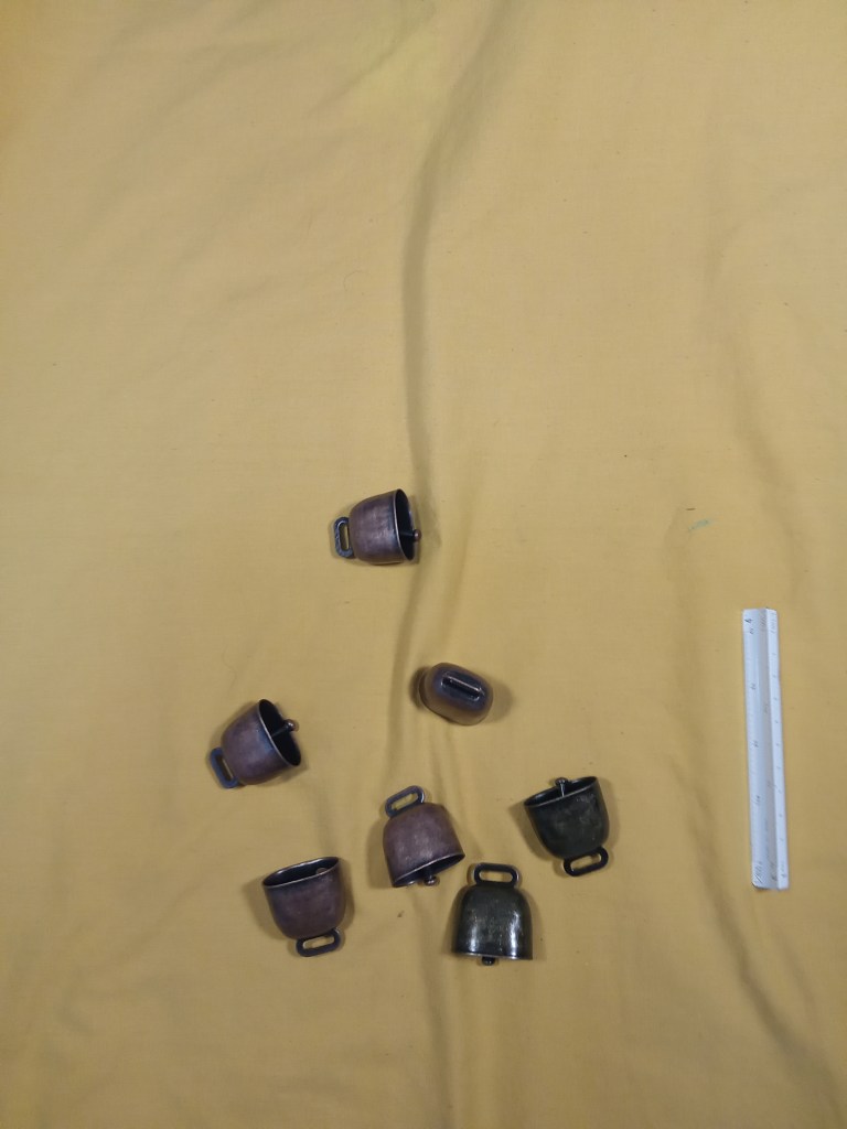 Estos cencerros son donación de mi amigo Enrique Blanco, compró muchos para fabricar un hamtletizador, instrumento que también ha donado, estos fueron los que le sobraron. El hamtletizador tendrá un artículo en el futuro.