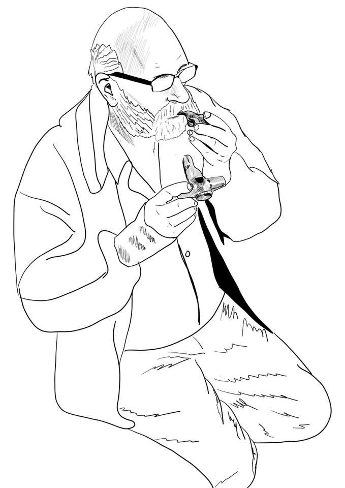 En una de mis obras le he dado el papel de griot, que es un juglar errante africano que transmite de una parte a otra la música, las noticias y la cultura. El rol le va como un guante. Es difícil pensar en otra persona que una los mundos de la música antigua y de la música contemporánea; de la charla amistosa y de la disertación formal; de la erudición japonesa y de la sencillez personal. Podemos, creo yo, con todo esto perdonarle cierta propensión al chiste malo, aunque no sea más que por lo mucho que disfruta contándolos.